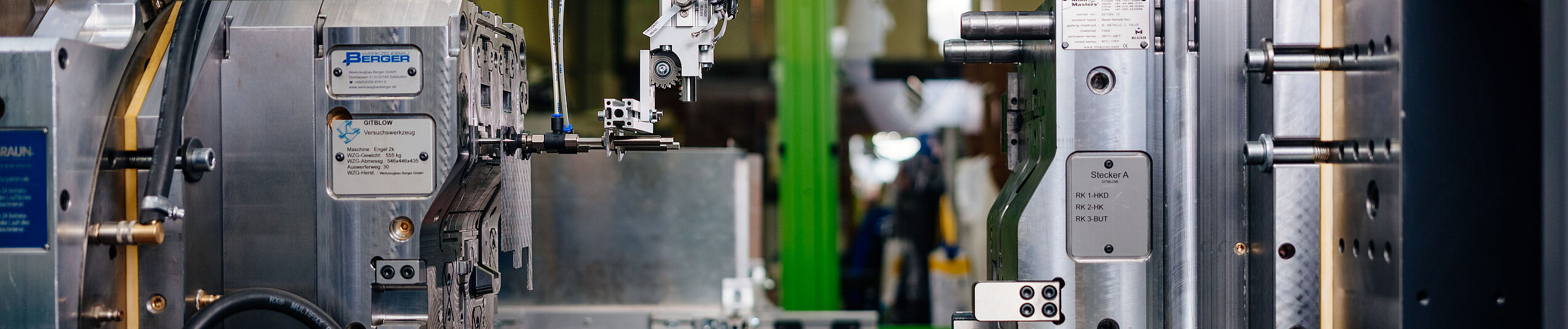 Kunststofftechnik Paderborn has been involved in injection moulding, which alongside extrusion is the most widely used plastics processing method, since its foundation. In addition to the conventional 1-component injection moulding process, research is being conducted into the special injection moulding processes of 2-component composite injection moulding, sandwich injection moulding, gas injection technology (GIT) and the GITBlow process developed at KTP. In addition to the process technology of injection moulding, our areas of activity also focus on filling behaviour in the mould and on mould technology.