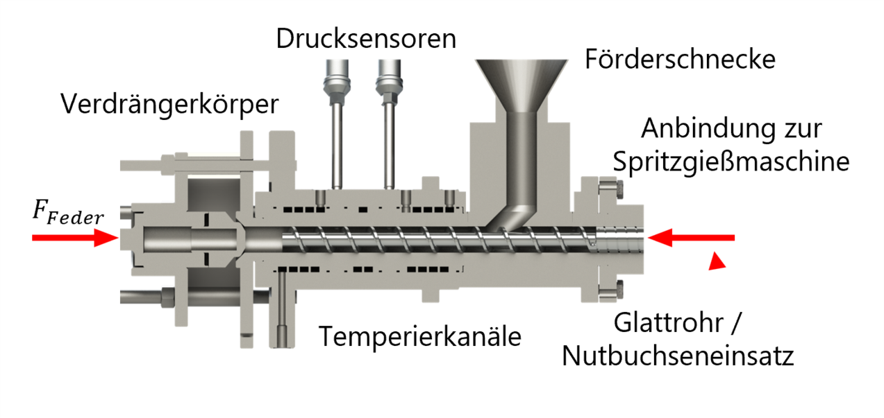 Insbesondere bei der Verarbeitung anspruchsvoller Materialien wie nicht aufbereitetem Mahlgut aus Recyclingprozessen oder gleitmitteladditiviertem Granulat hat der Einzug und die Förderung des losen Schüttguts zu Beginn der Plastifizierschnecke großen Einfluss auf den Gesamtprozess. Durch eine unzureichend dimensionierte Einzugszone können die Wirtschaftlichkeit des Prozesses sowie die Qualität der hergestellten Bauteile durch Brückenbildung im Trichter oder eingezogene Luft beeinträchtigt werden. Ziel des Projekts ist es, mittels numerischer Simulation ein tiefergehendes Verständnis für die Vorgänge im Einzugsbereich von Spritzgießmaschinen zu schaffen und entsprechende Auslegungsmöglichkeiten zu schaffen. Teilaspekte sind dabei